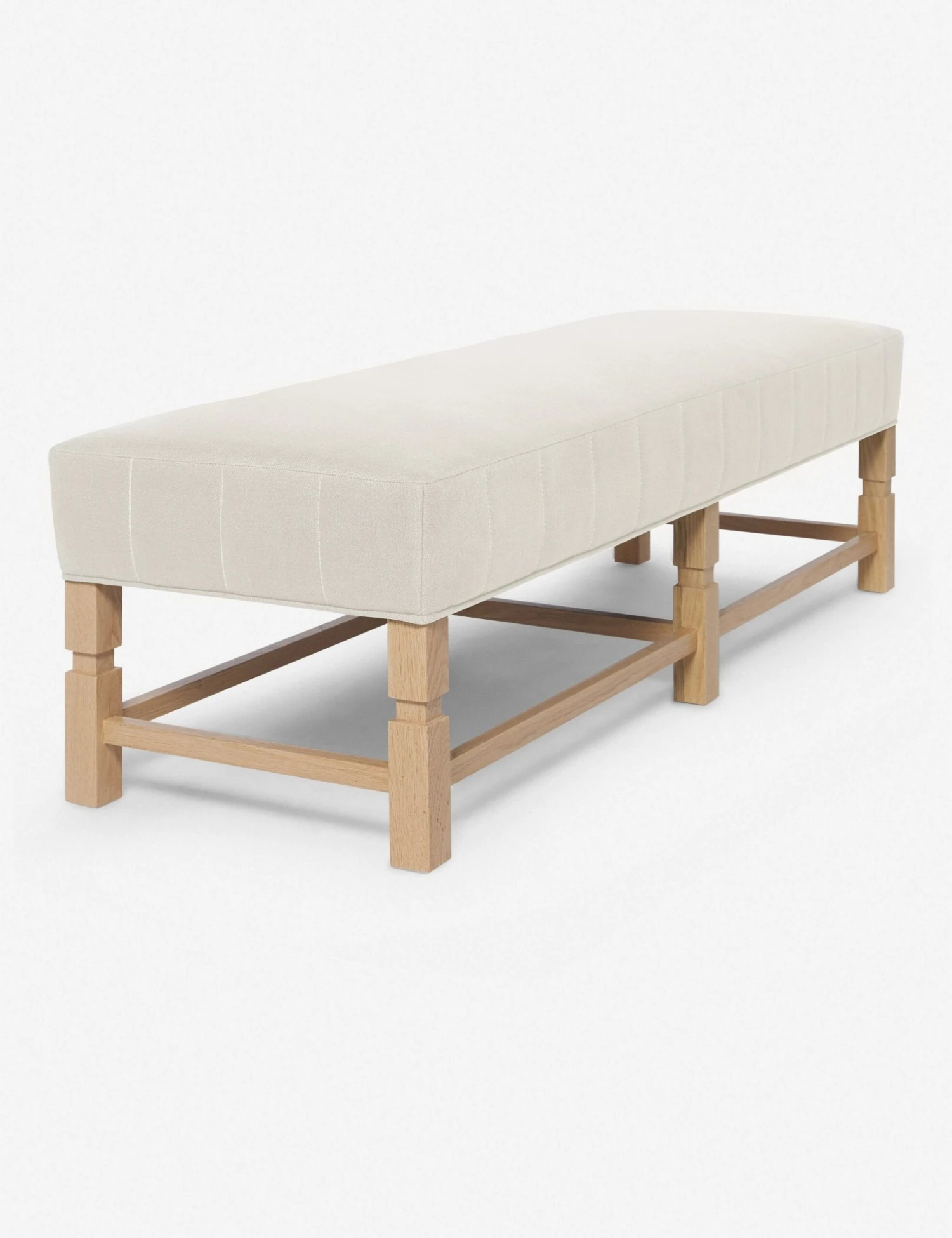 Combining tailored style and classic materials, this upholstered bench is the epitome of timeless comfort. From the exclusive Ginny Macdonald collection for Lulu and Georgia, this piece features carved detailing on the frame and vertical channeling around the cushion. Inspired by Ginny’s English heritage and handmade in Los Angeles, each piece in the collection fuses her British roots with her California lifestyle.