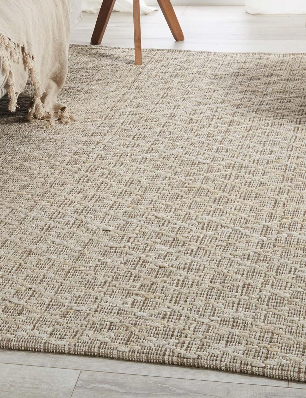 This rug is handwoven of braided, bleached jute fibers and accented with luxurious viscose yarns for an soft, organic feel underfoot. The desert neutrals of this area rug offer a light and airy vibe that can be curated with a host of different styles.