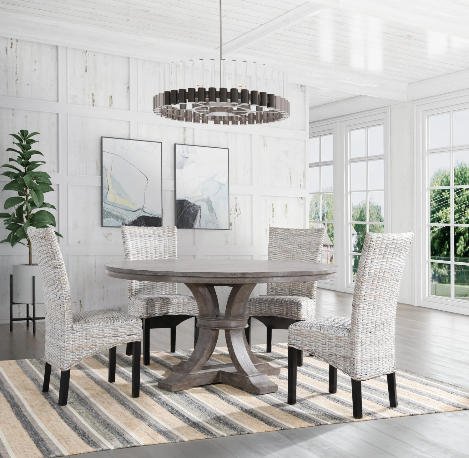 A balanced palette sets the tone for grounded appeal in this natural fiber rug. The rug’s striped design is the perfect way to bring fresh visual texture into a transitional space while reflecting organic notes.