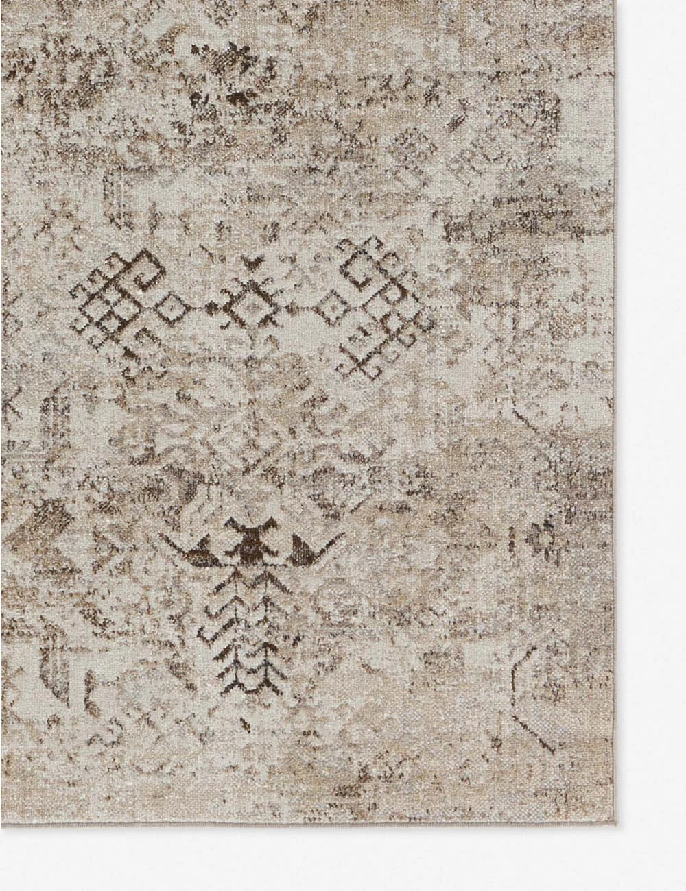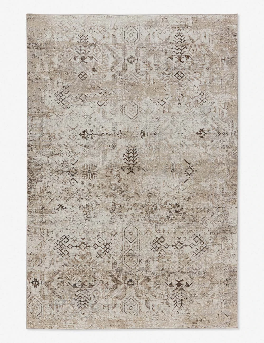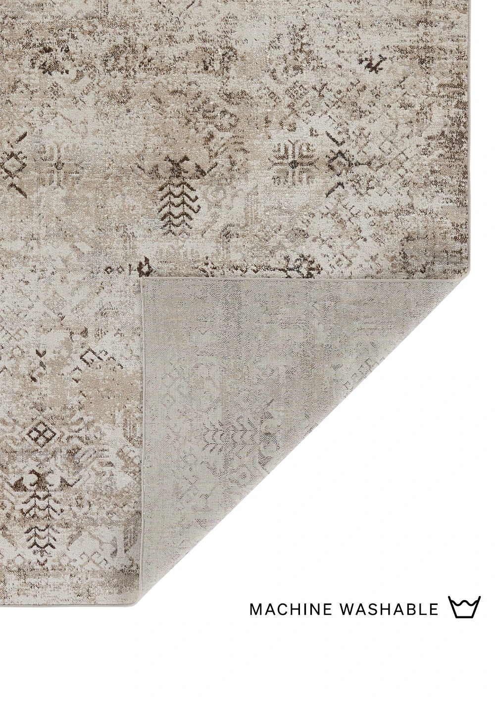 The Kasim rug features a distressed design in warm, neutral tones highlighted by a subtle sheen. The modern construction and low pile design are perfect for high-traffic and pet-friendly spaces. Plus, this area rug is machine washable for easy-care appeal.