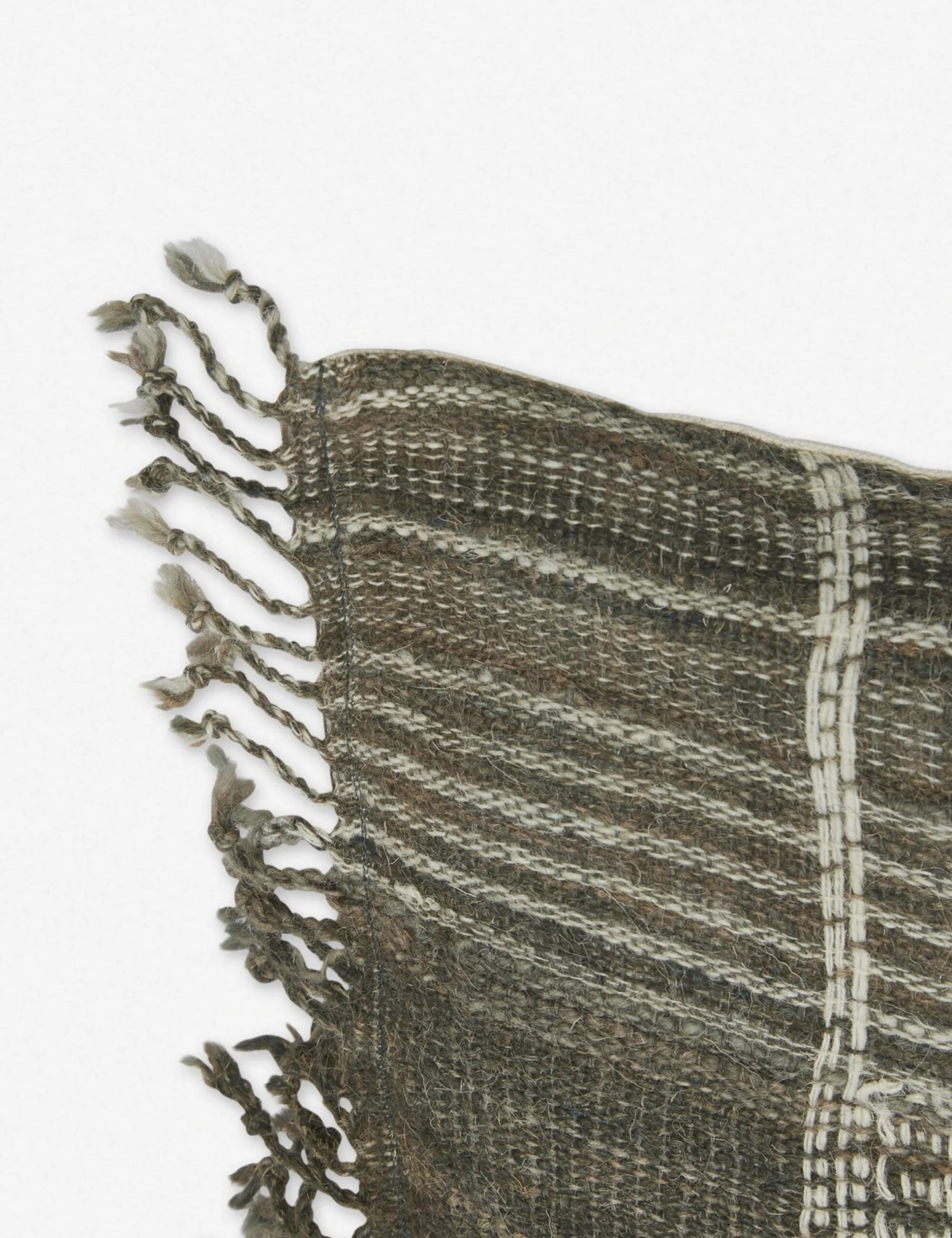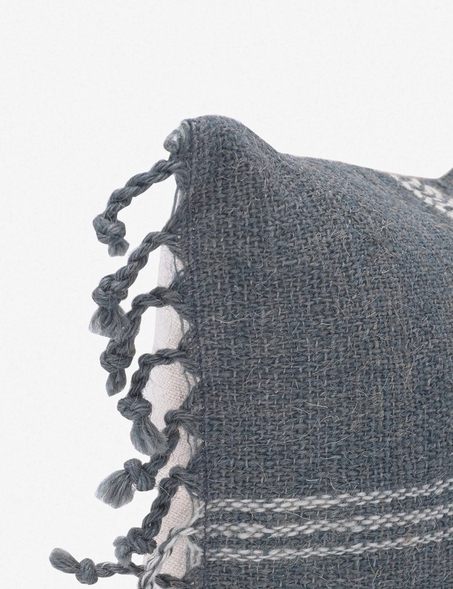 Woven with naturally dyed wool, this pillow combines classic stripes and intricate geometric patterns throughout. Finished with knotted fringe, this handmade decorative pillow takes artisan appeal to the next level in any space.