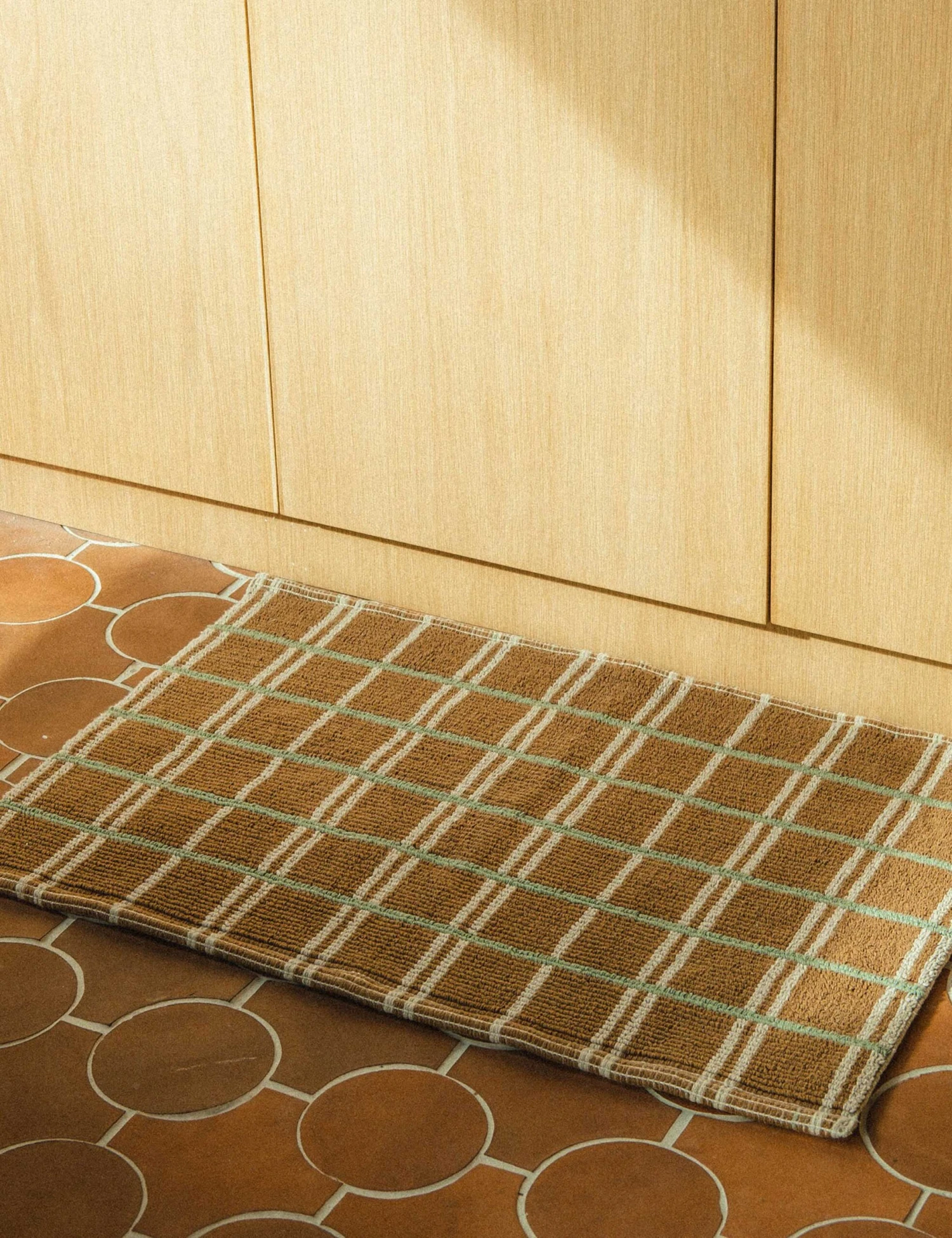 Morrow Soft Goods brings sustainability to beauty—creating lasting products with a mindful approach inspired by the colors, patterns, and textures of nature. This handmade bath mat features tight cotton loops for a smooth surface that’s soft and absorbent. An earthy palette brings fresh appeal to the classic check pattern—perfect for a modern space grounded by organic touches.