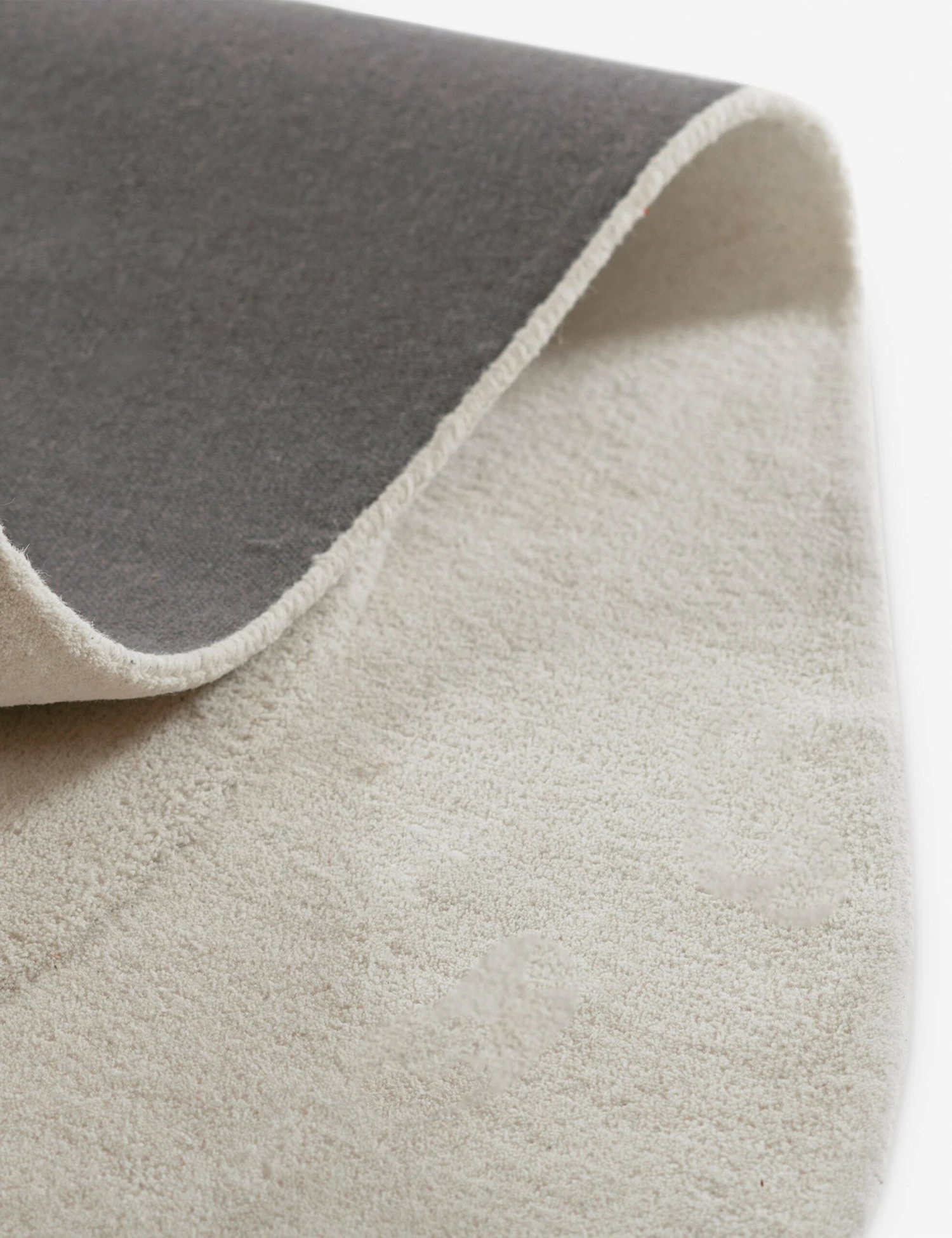 Bean-shaped and cloud soft, the Nemy rug is a chic statement for modern decor. The hand-tufted wool offers natural fiber comfort in solid ivory with a raised pile in the middle for quiet impact. We love this unique rug for an artfully curated lounge or luxurious bedroom edit.
